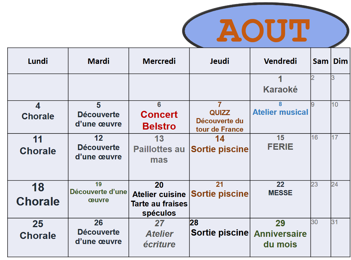 Animations EHPAD Cers – Programme de août 2025 au Mas du Moulin